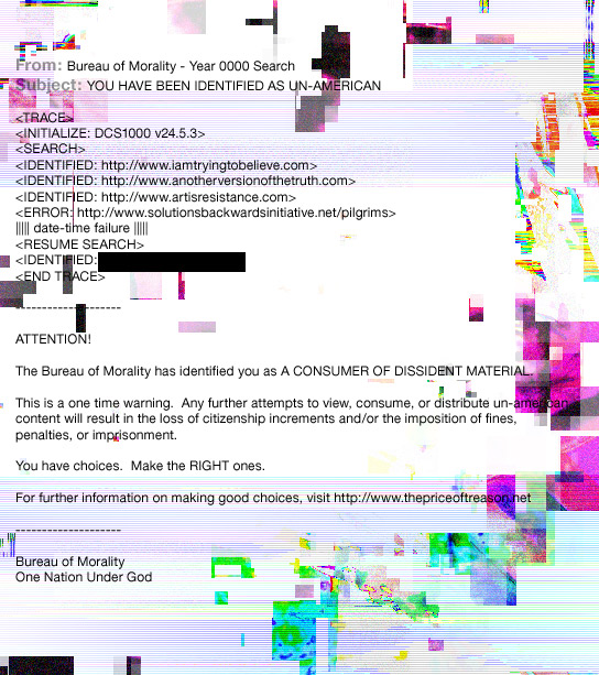 Email sent from Bureau of Morality Sentinel (Automated Search & Warning Subroutine) from